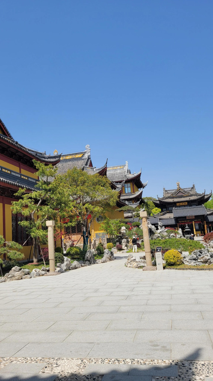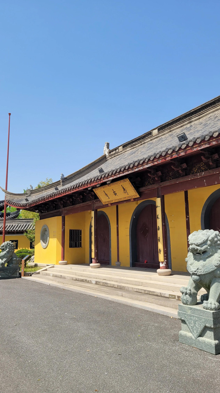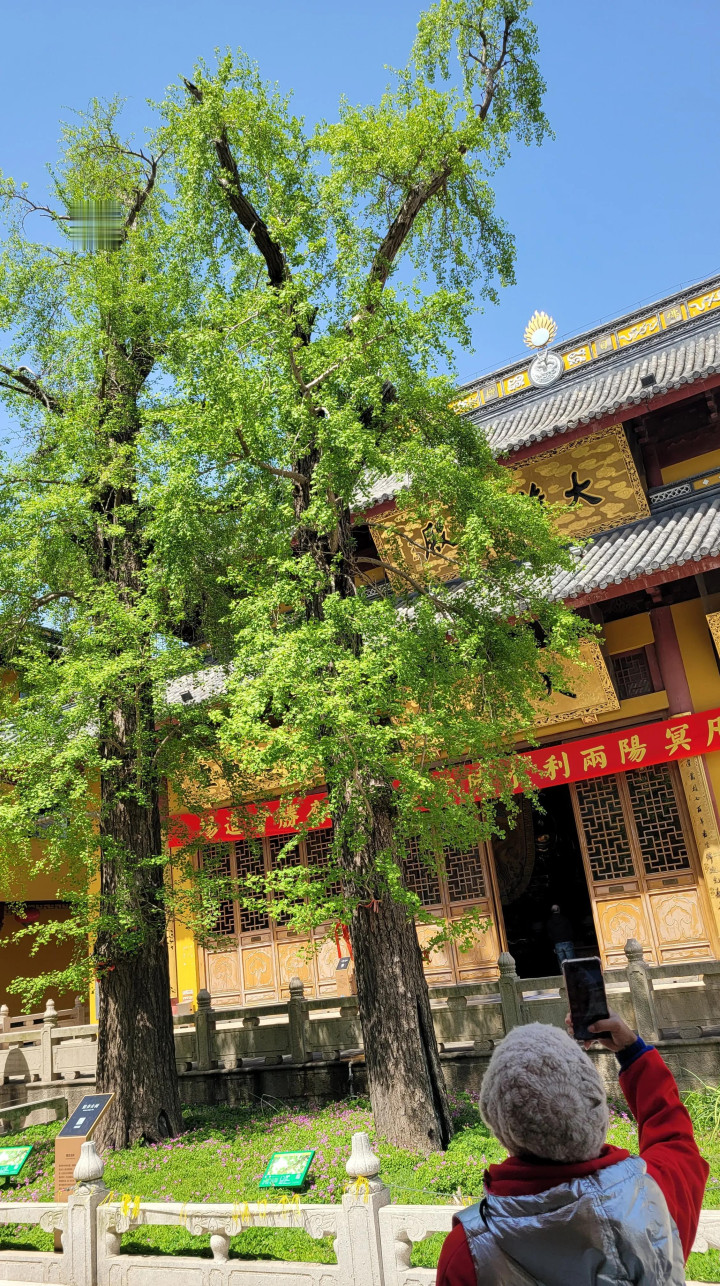 在寺庙里,我看到有两棵银杏树,树冠粗壮,树龄有500年,见证了崇明的历史发展变迁。如今的寺庙经过重修,看上去修葺一新。